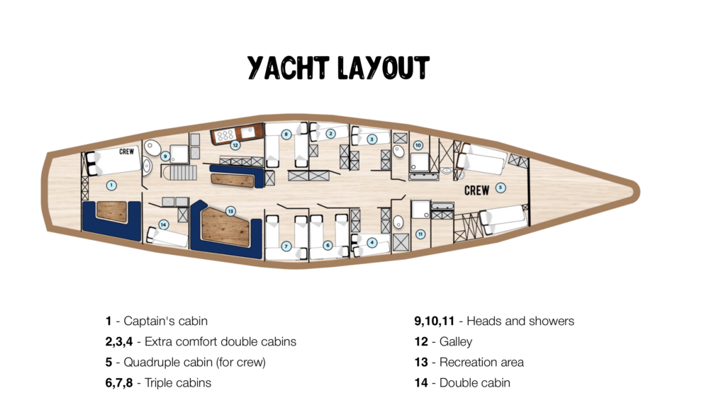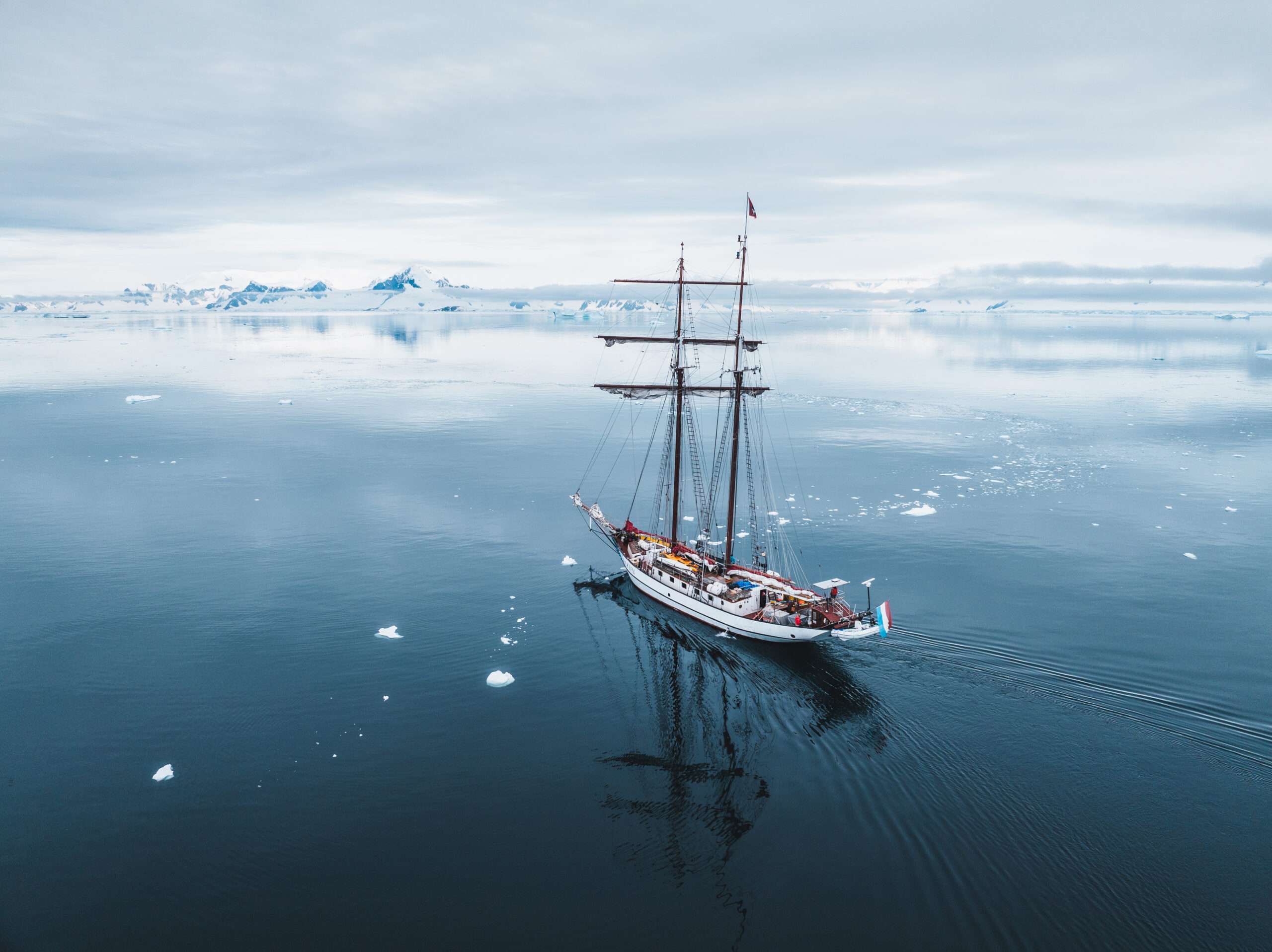 Our Antarctic journey unfolds aboard Elsi, a 38-metre expedition schooner designed for serious offshore exploration. Launched in 1986 from a German shipyard, she was originally built to train sailors in demanding conditions before undergoing a significant modernization in 2013. In the years that followed, she supported humanitarian projects in some of the most isolated regions on Earth.